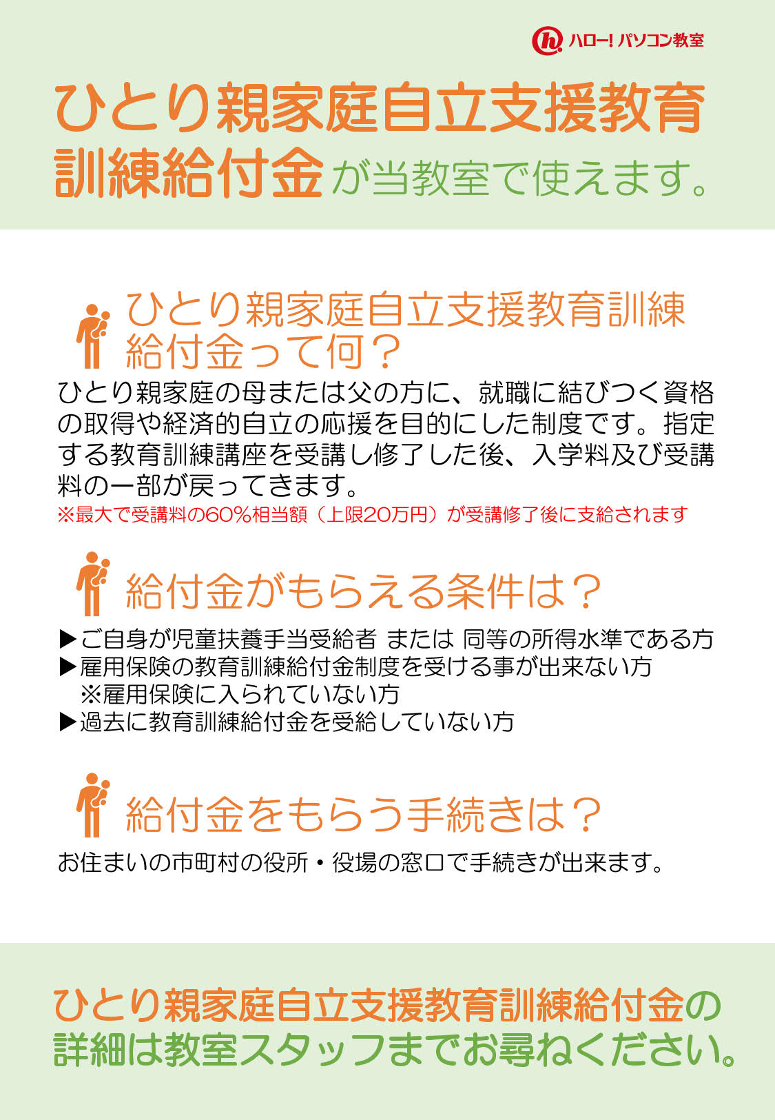当教室では『ひとり親家庭自立支援教育訓練給付金』※旧:母子(父子)家庭自立支援給付金